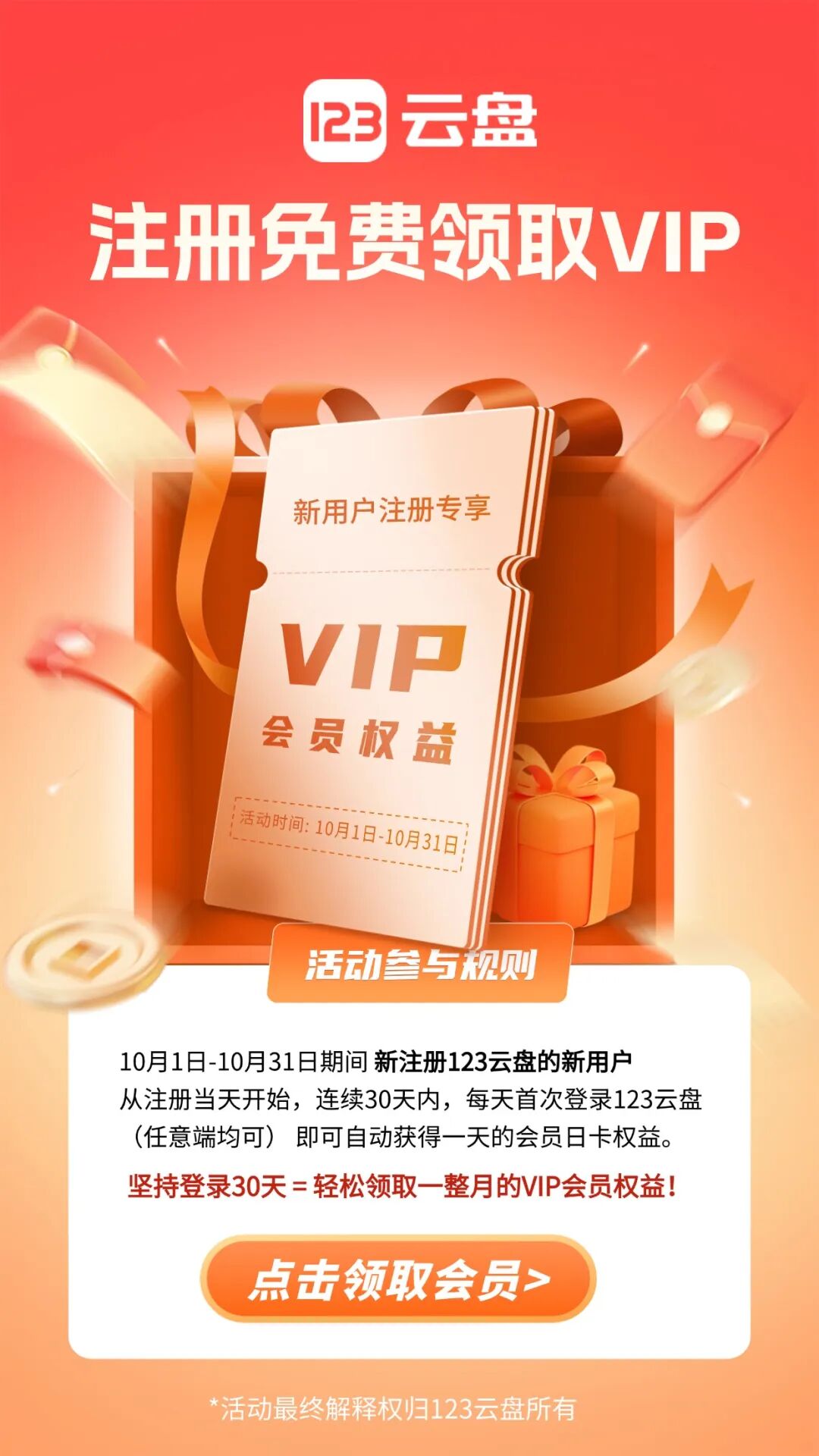 补充说明:活动时间10月1日~10月31日,在此期间,注册登录均可领取次日会员。